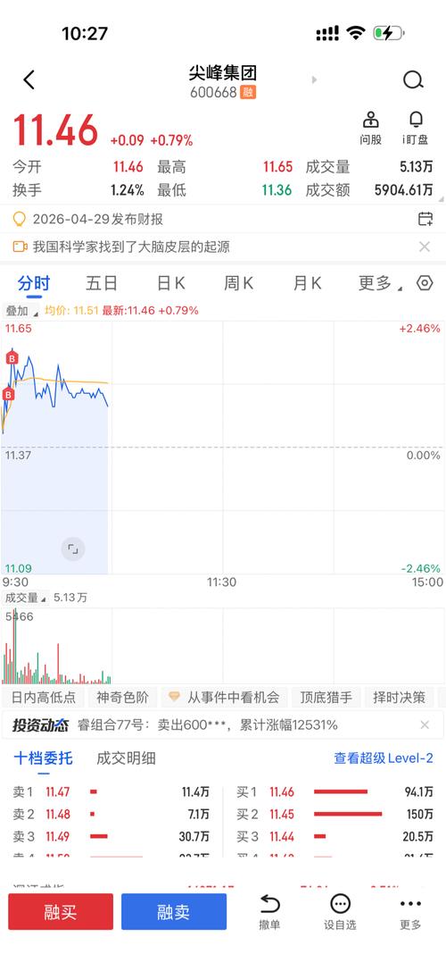 $尖峰集团(SH600668)$突破不了11.85我清仓走人,压力太大了