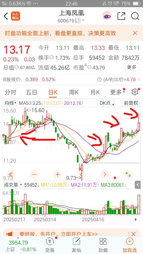 $上海凤凰(SH600679)$ 目标价44,不过得先下跌百分之10
