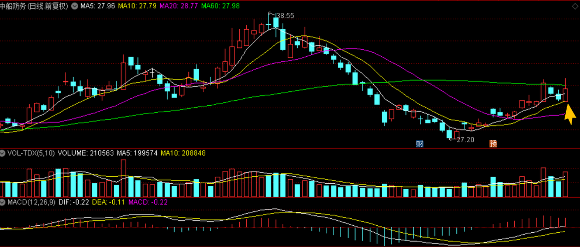 $中船防务(SH600685)$中船防务,这个票今天玉期会围绕60日继续反复震荡,继续持有。昨天做了一漂亮的T。这个票中期看好,正常玉期,它围绕60日均线震荡3-5天后会启动强一些的上站趋势。目前它不是热门谷,它不能像立讯、工业那样的科技大蓝筹一样受兹金追捧,那些热门谷我们是提前潜伏的。但接下来如果市场曹作军军,它可能成为热门谷,它的MACD在4月14日形成金叉,日线如果能够站稳60日均线,则中线...