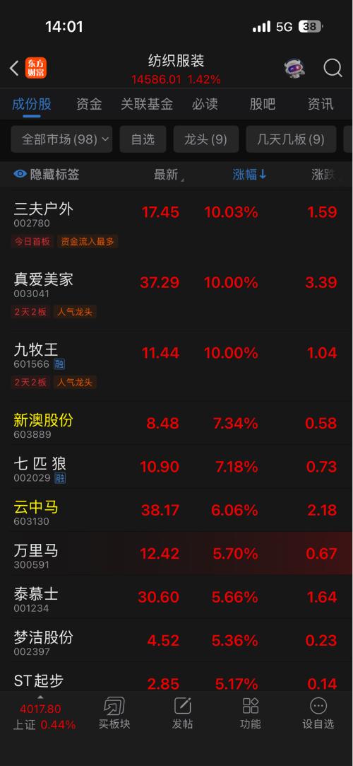 $上海三毛(SH600689)$这票主力没钱,都散了吧,追龙头九牧王