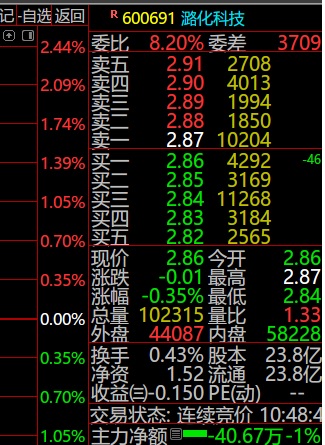 $潞化科技(SH600691)$反弹到位,后一个小时维持横盘调整,收盘至2元8毛8分
