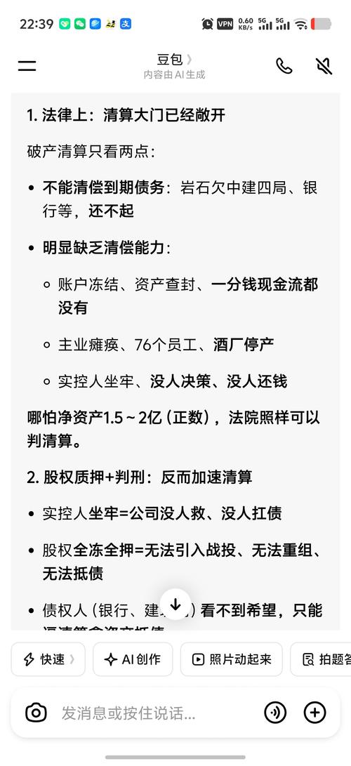 $*ST岩石(SH600696)$豆包有清算的风险,纯讨论大家说说清算的可能性大吗