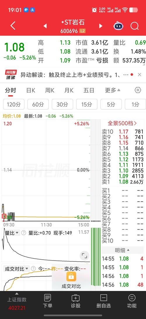 $*ST岩石(SH600696)$今天买了5手陪大家如果整理期到2毛左右就补点去三板走一趟高于2毛5就不玩了关系看是3还是1要是1纟就直接不玩