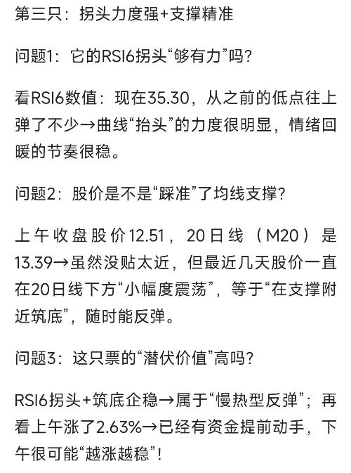 上午收盘潜伏票:RSI6拐头 均线企稳,这3只信号全踩中!