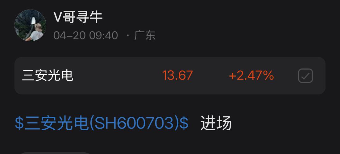 $三安光电(SH600703)$个股趋势还不错,目前也是较活跃,我个人选择介入了。