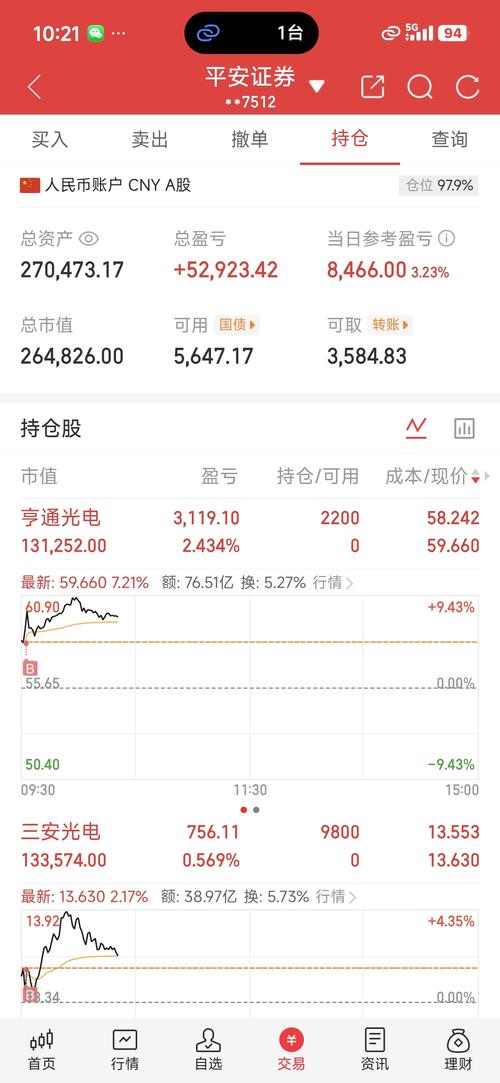 今日持仓总结:$三安光电(SH600703)$三安光电今日高开震荡上行,盘中冲高后有所回落,整体维持强势震荡格局,今天早盘选择进场博弈。$亨通光电(SH600487)$今日高开后盘中短暂回调,随后震荡上行,午后持续走强,整体保持强势上涨格局,早盘分享同时进场,帖子发不出来。