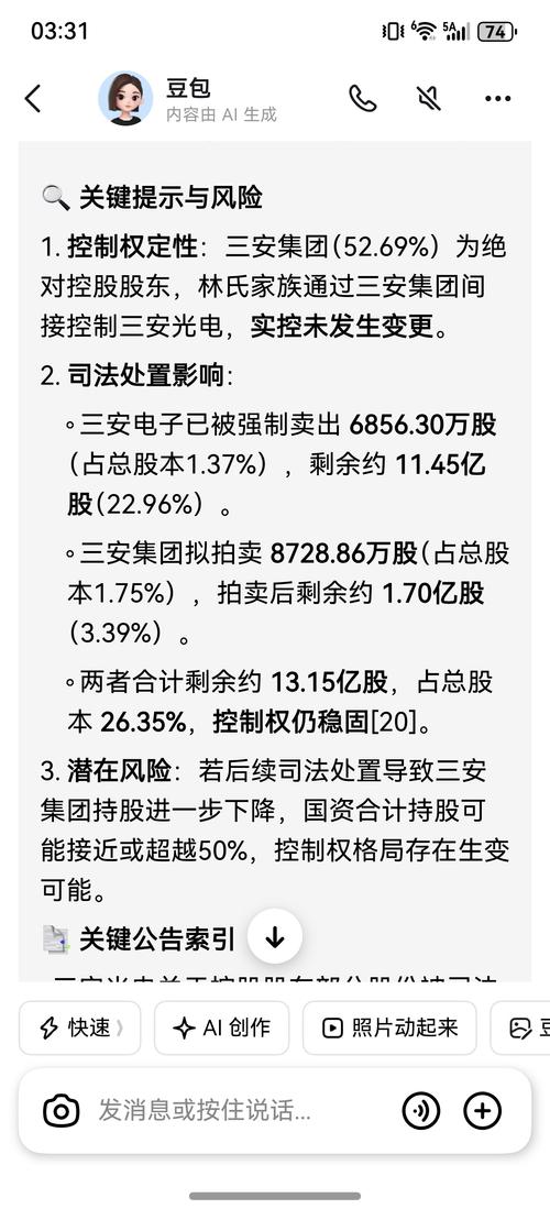 $三安光电(SH600703)$急是没有用的,强制执行卖出的,还有法院拍卖的,实控人总经理关禁闭的,这一桩桩一件件。 先说重庆法院强制卖出6856w股偿还债务10亿,对控制权暂时不会有冲击,长期来看未知的债务太多,短期是小利空,长期看偏利好,重庆国资有可能会成为控股股东,那么可能会带来一些资源。 那么被法院拍卖8729w股呢,如果正常拍卖没问题,无非就是时间消化被动减持带来的信心受挫。那如果流拍了...