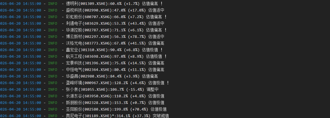 $彩虹股份(SH600707)$实时估值66%,上升7%,今日涨停,指标分数估值偏高,如果分数估值能保持继续扩大趋势,可以继续关注一下标的后续走势。 $利通电子(SH603629)$实时估值53%,上升43%,今日上涨,指标分数估值适中,可以继续关注一下后市标的行情。 $博云新材(SZ002297)$实时估值56%,上升78%,今日涨停,指标分数估值适中,可以继续追踪一下标的后续走向。