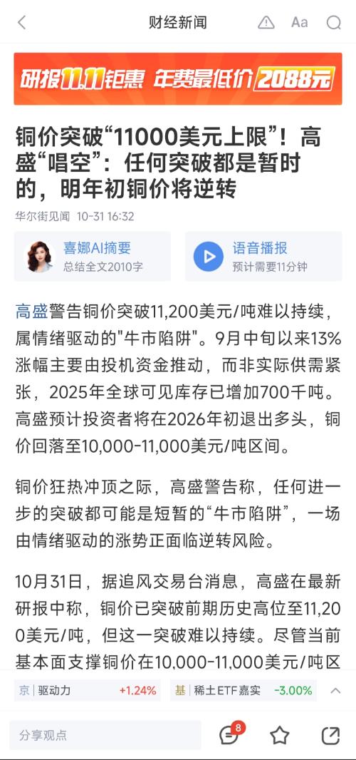 早几天说铜要涨到14000美元,高盛也做短线了,言儿无信,反手多又反手空,信它的饭都没有