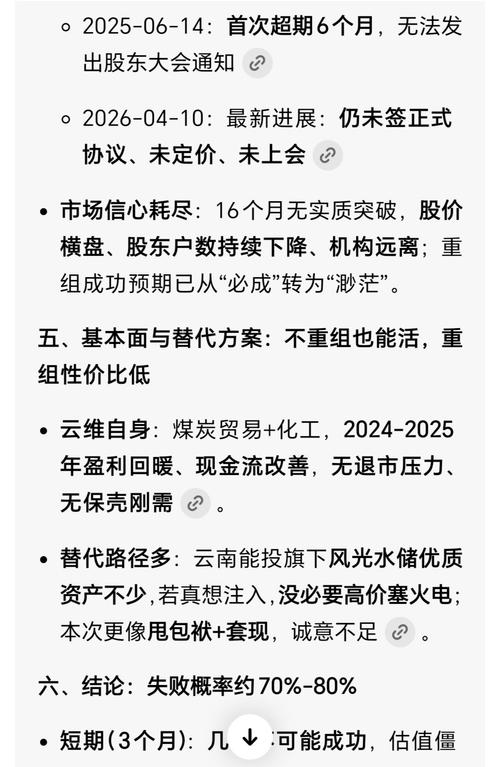 目前大盘重组股活跃而该股跌跌不休云维股份 目前80%概率重组失败。
