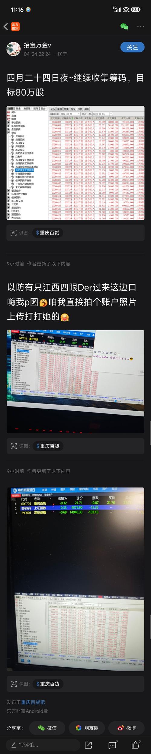 $重庆百货(SH600729)$前期基金和北上走了三千多万股,都是散户接的盘迈