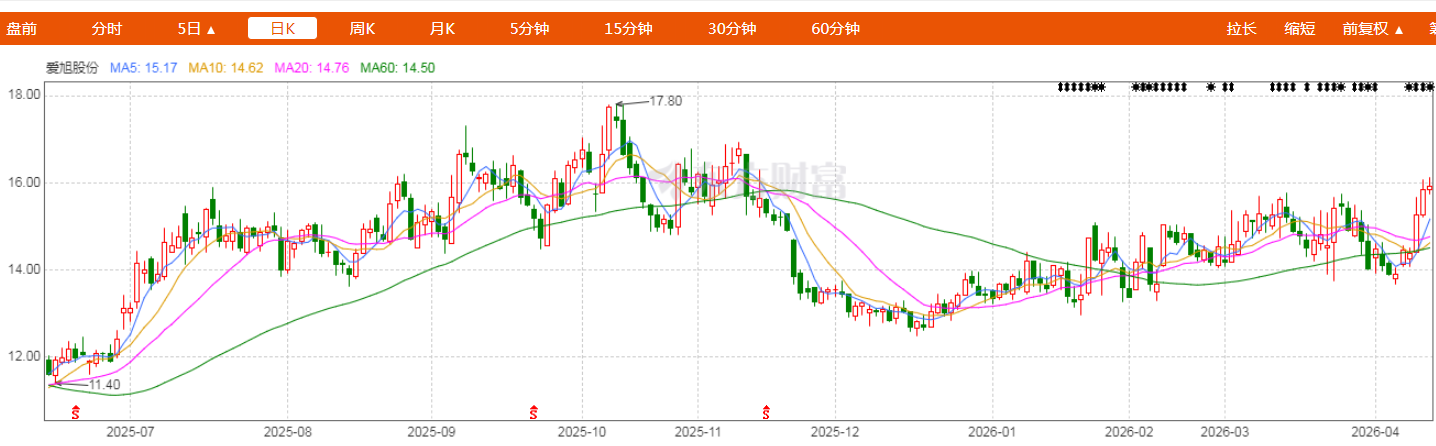 $爱旭股份(SH600732)$主力出货明显了,突破后短期看调整,15.6左右可以加仓