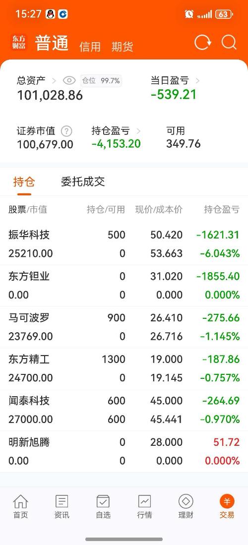 朝气蓬勃爱翻倍 更新于 今天 03:31 2480次浏览 十万实盘第四十二天,两个月,账户又回到原点。 $东方钽业(SZ000962)$$新莱应材(SZ300260)$$闻泰科技(SH600745)$今天卖出东东方钽业,亏损9个电,现在账户只有10万一千块,历经42个交易日,两个月的时间,只有1000块钱的盈利,看到这个结果,确实挺难过的,做了两个月的策略,结果却如此的难堪。卖出明新旭腾,好在在相对高点卖,赚了一包烟钱。后来又买入了马可波罗和东方精工(这两个也是策略内的)。这个策略这几天感觉都失效了... 224