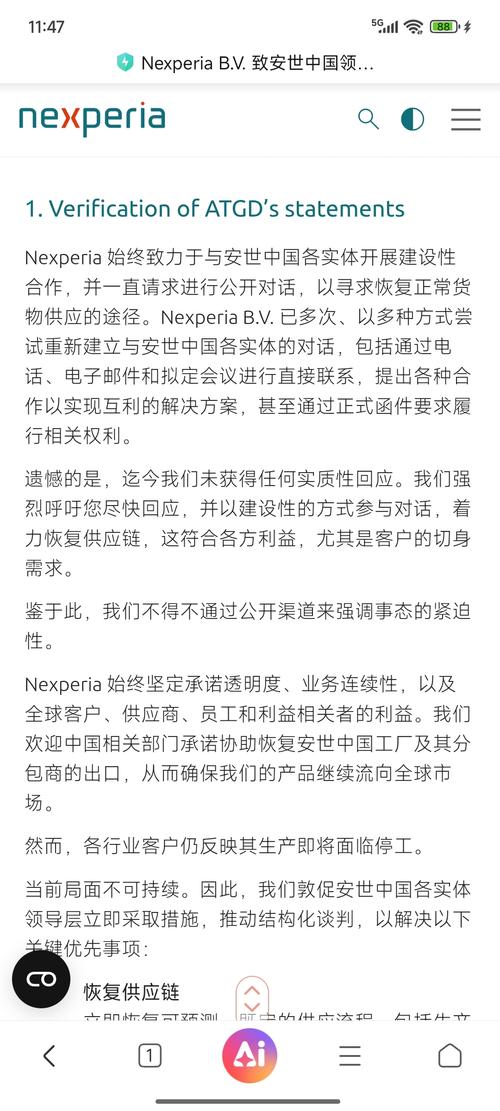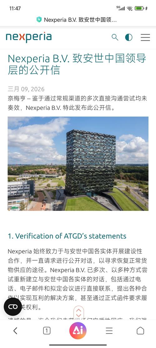$闻泰科技(SH600745)$这是荷兰安世官网3月9日发布的公开信,信上说他们一直尝试联系安世中国,但是咱们这边一直没人回复,没办法才发的公开信,咱们这边媒体一个报道的也没有,公司也没有出来反驳。