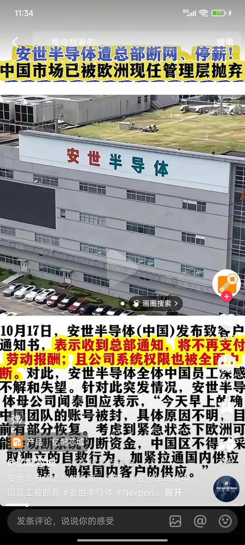 2026年4月25日最新消息显示,安世半导体全体中国员工向客户发出通知书,称收到总部通知将不再支付劳动报酬,且公司系统权限也被全面中断。