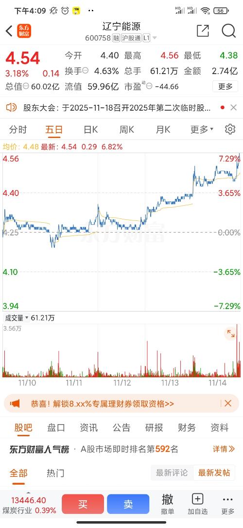 $辽宁能源(SH600758)$ 你的逆势拉升吸引了我的注意,很不错,很不错,等等我,等等我