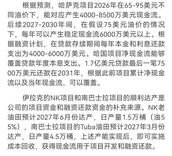 重点二:根据公司之前预测,油价在65-95美元之间,公司2026年可分配现金流分别是4000万美元——8500万美元,完全覆盖了债务,请注意这是现金流!
