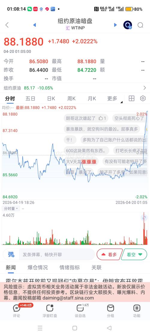 $洲际油气(SH600759)$4月20日原油暗盘尾盘暴拉!