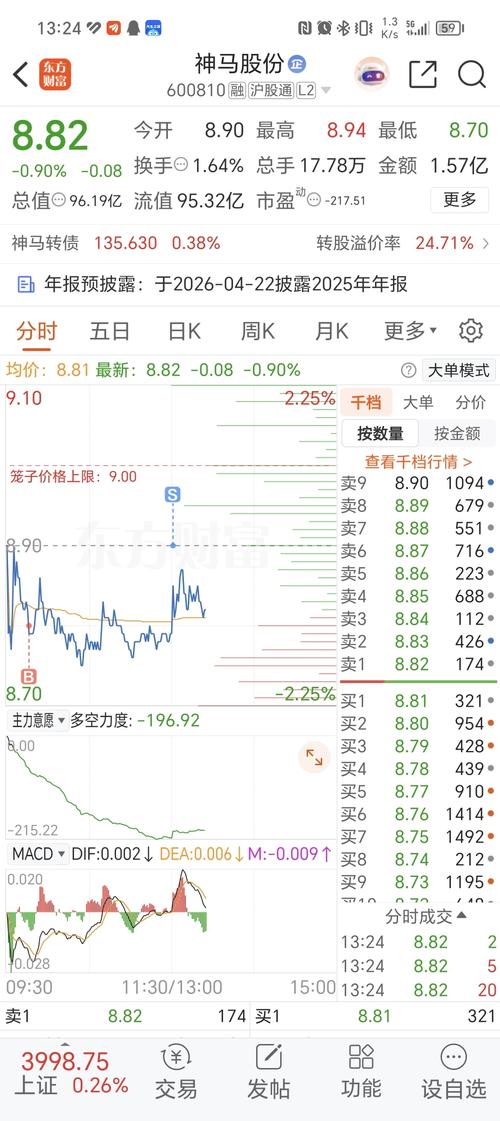 $神马股份(SH600810)$看拖单下午要加速下跌了,短期看到8.5
