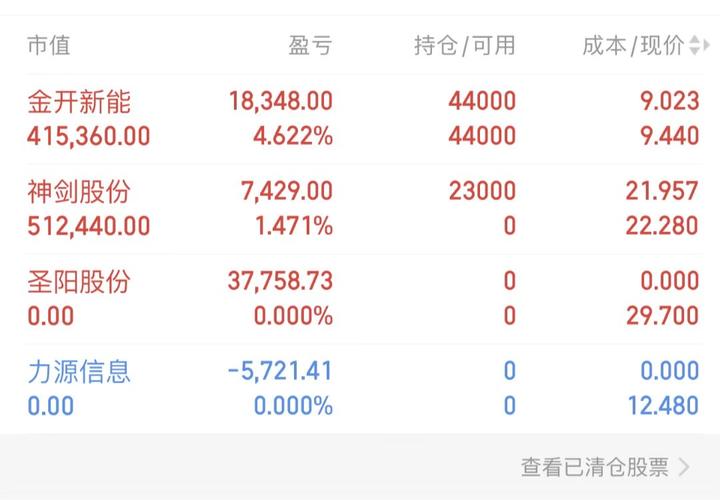 中午好各位朋友,邓哥周二早盘建仓记录 新开:$神剑股份(SZ002361)$ 持没:$金开新能(SH600821)$ 落袋:$圣阳股份(SZ002580)$力源信息 风险提示!!个人的记录分享,仅供参考,不作任何投资建议!大家切勿盲目跟风!股市有风险,投资需谨慎!风险自负!!!