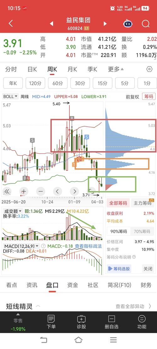 $益民集团(SH600824)$红色框是4.4元~5.4元套牢盘重灾区,橙色框是4.1元~4.4元套牢盘次重灾区,绿色3.79元~4.1元是近期资金情况,盘面上,红色和橙色筹码峰未发生改变绿色筹码峰小幅变动,成交量萎靡,无法充分换手,何来反弹?