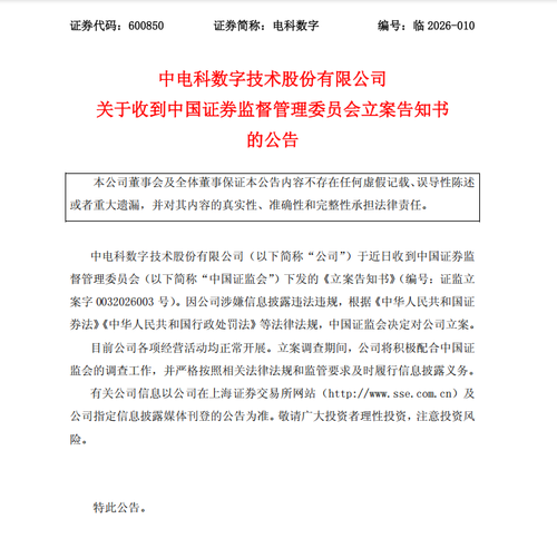电科数字26年被立案调查中,受损投资者可索赔