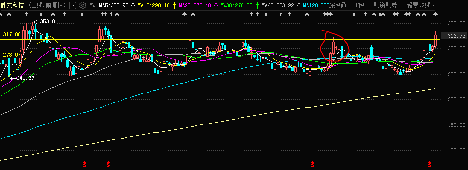 $胜宏科技(SZ300476)$胜宏科技,上周走出相反方向,本以为会回踩一下,再强势回到320以上,然而并没有回踩的动作,直接向上,所以导致周五收出长影线,这阳线很像2月26号,出现长影线后走修复阶段,会不会重复,看今天的决定,要是无量波动,验证我前面说的,上去后再下来休整,希望市场动起来,不要收出高位十字星,胜宏订单情况很不容让市场活跃,再冷下来,后面需要时间才能接着拉 $航天长峰(SH600855)$...