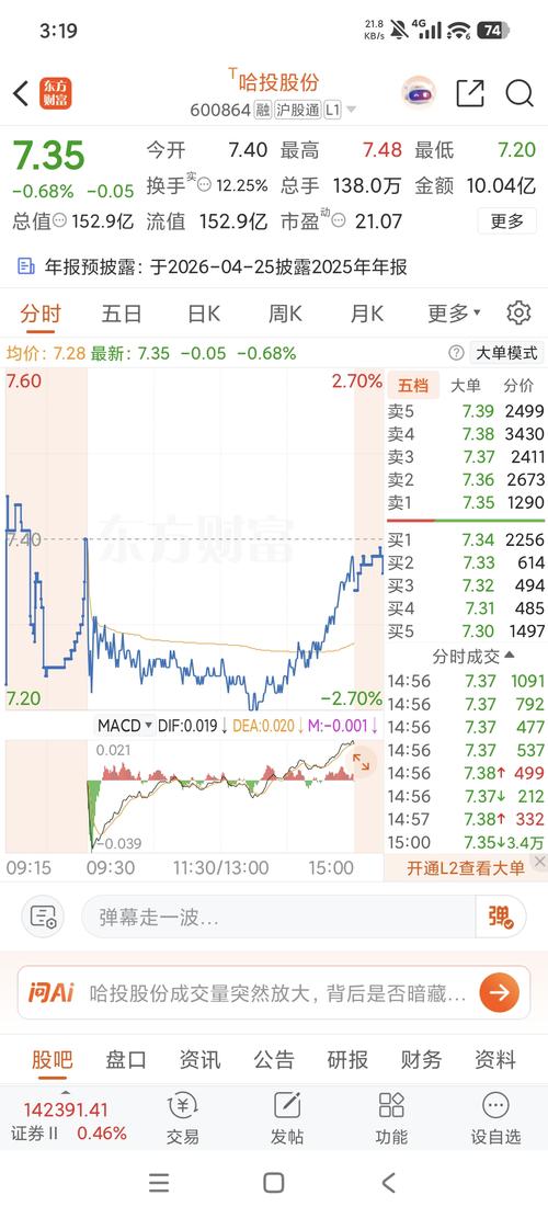 $哈投股份(SH600864)$买了你,心理压力很大啊?