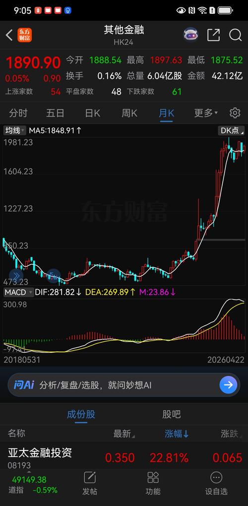$哈投股份(SH600864)$呵呵,二哈形态虽然好看,但你得看整体,板块走不好,二哈不可能一个人表演的,看看下图的港股券商,我赌5月份一根大阴破位,东方财富向下到14左右,二哈5元见
