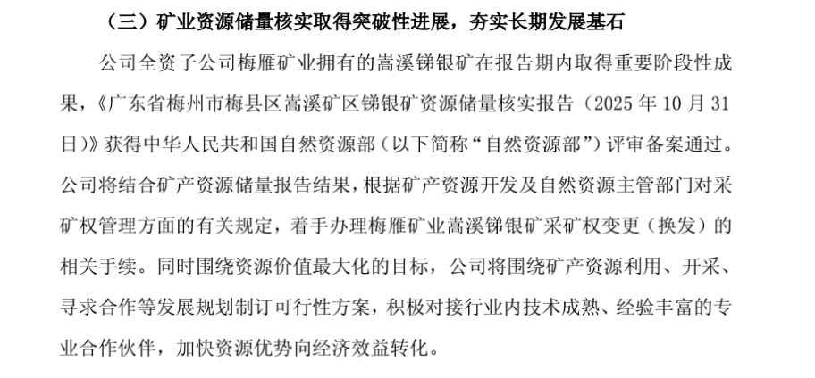 @董秘:梅雁高品位的锑矿和银矿于元月22日获得国字号国土资源部报备通过之后,至今三个月过去了,公司就没有任何下一步计划吗,还是有计划没有披露? 几十万股民没有分红无意见,但这一块的工作进展投资者应该是非常关心的