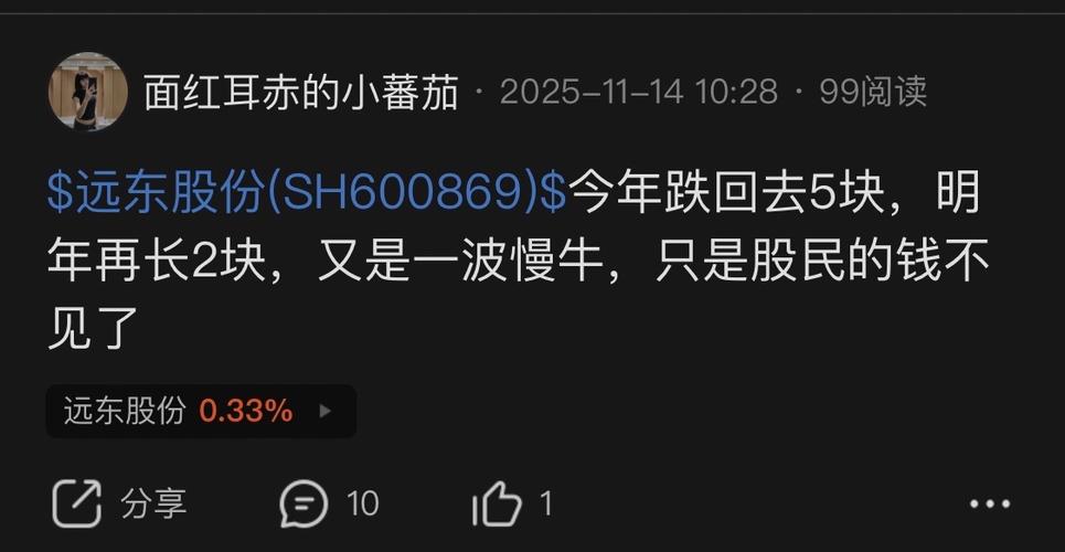 $远东股份(SH600869)$每天4毛