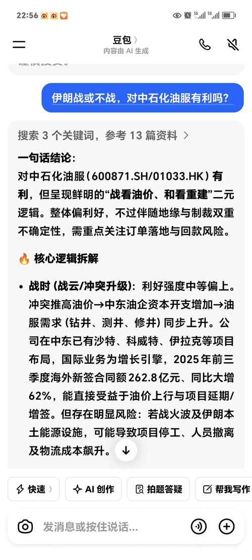 $石化油服(SH600871)$中石化油服在“战或不战”的场景下都能找到业绩抓手:战看油价弹性、和看重建红利。作为中石化旗下油服平台,基本盘稳定、国际布局加速,整体偏向利好,但短期股价波动与项目落地节奏需重点跟踪。