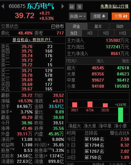 $东方电气(SH600875)$尾盘那笔最大的是买还是卖啊