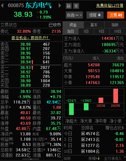 $东方电气(SH600875)$今天是吃了泻药吗?下来这么快