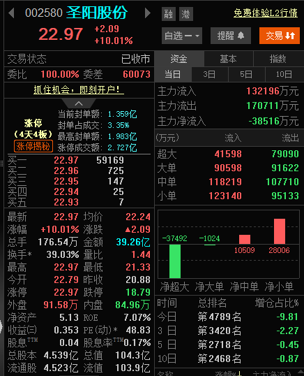 4月14日收评:圣阳股份回封成妖,东方电气该走就走