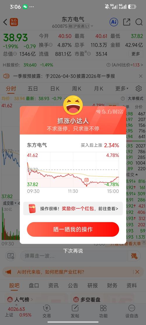 $东方电气(SH600875)$竞猜一季度净利润和扣非净利润 下午睡了一觉,看看走势,觉得蛮好玩。