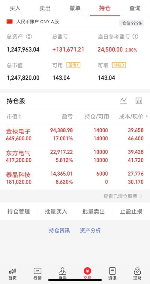 持仓分享 个人实盘记录! 今日持有:东方电气、金禄电子、泰晶科技 金禄电子开盘极端下跌后资金强力承接,深V结构守住了中期底部区间,下行风险暂时释放。 我将用真实账户记录每一天的操作。 特别声明:本内容为个人实盘记录,不构成投资建议,更不鼓励跟买!股市有风险,投资请理性投资!$金禄电子(SZ301282)$$泰晶科技(SH603738)$$东方电气(SH600875)$
