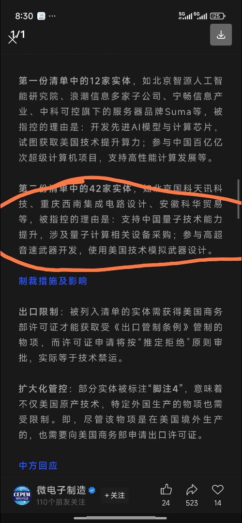 $电科芯片(SH600877)$子公司西南集成被美国制裁,原因是和量子技术相关,最近中科集团量子技术又获得表彰,大家自己体会!