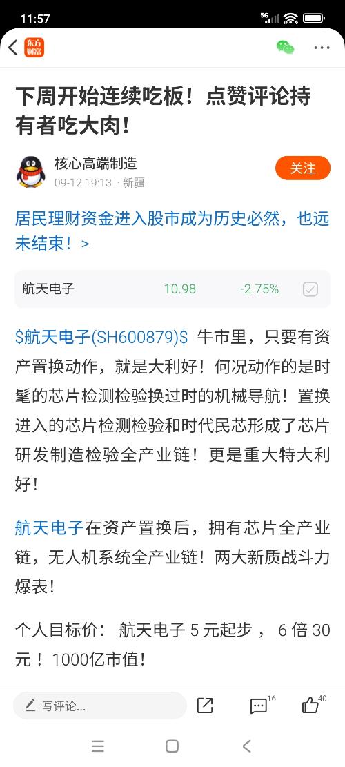 $航天电子(SH600879)$一群空托活成了反向指标,也算是肥柴利用,物尽其用!