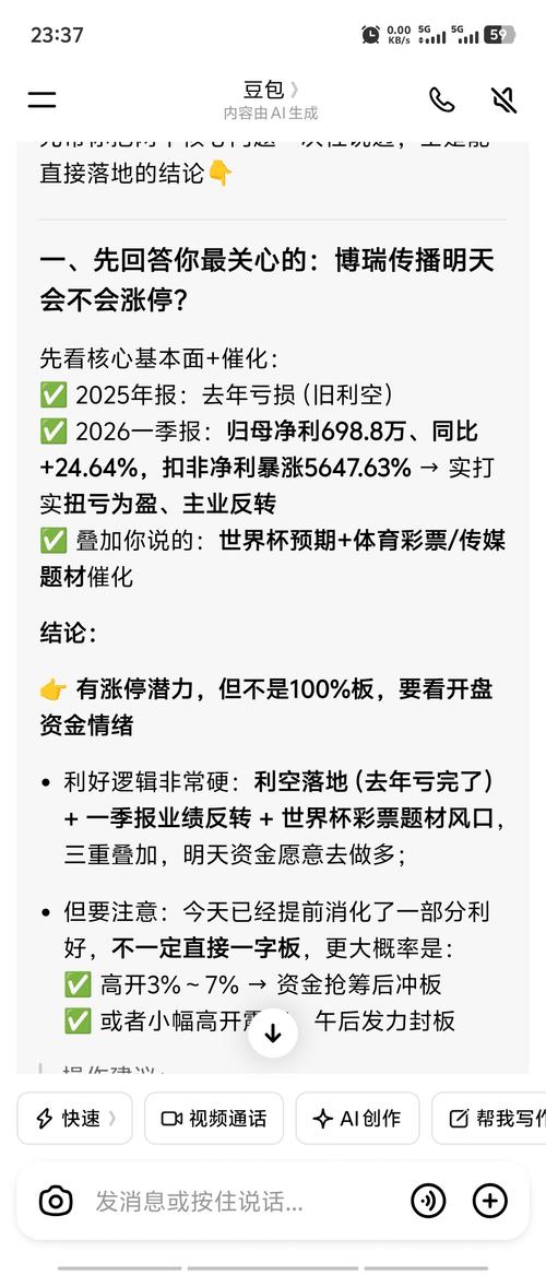 $博瑞传播(SH600880)$2025年业绩整体表现不佳,多项关键指标下滑且出现亏损,这对公司股价可能产生一定的利空影响。但2026年第一季度净利润有较大幅度增长,显示出公司可能有一定的改善趋势,不过营业收入仍在下降,这也可能会让投资者对其未来发展存在担忧。综合来看,不能简单地将博瑞传播的业绩一概视为利空,需要持续关注其后续的经营情况和业绩表现。