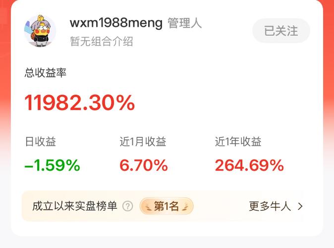 @wxm1988meng那肯定推荐实盘榜第一的蒙哥啊!太牛逼了这个账户收益,还有谁?#社区【搜神记】#