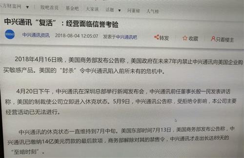 粉碎“造不如买”的谎言。 把三年利润(100多亿)罚没了,加上无条件答应所有要求,美所谓的合规小组进入接管中兴通讯,中兴通讯才能买别人产品,之后数年来中兴通讯还不断受到限令与打压。 据东方财富网发文称:“2018年4月20日下午,中兴通讯在深圳总部举行新闻发布会,中兴通讯前任董事长殷一民发表讲话称,美国的制裁使公司立即进入休克状态。5月9日,中兴通讯公告称,受拒绝令影响,本公司主要经营活动已无法进...