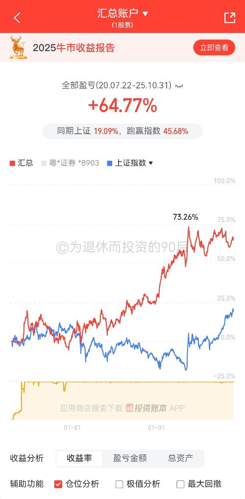 定投起始:20年7月22日,上证3333点 定投时长:第6年,总计1270个交易日 总体收益:64.77%,跑赢上证45.68% 今年收益:-3.49%,跑输上证21.48% 本周收益:-0.65%,跑输上证0.76% 加仓情况: 本周以28.30元/股加仓长江电力 投资以来累计加仓309次 今年以来累计加仓50次 分红情况: 投资以来累计收到分红68次 今年以来累计收到分红19次 只买不卖,收集...
