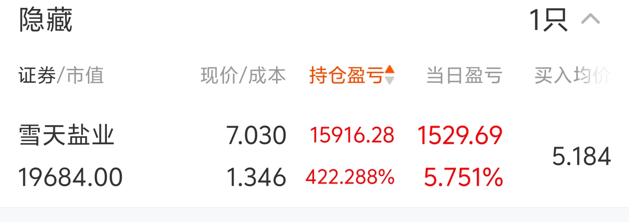 $雪天盐业(SH600929)$误打误撞上周三买进的,收盈十几个点