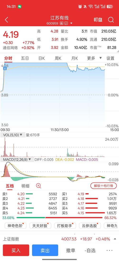$江苏有线(SH600959)$打板进的,明天低开的概率非常大,主力明天给个红盘机会跑吧