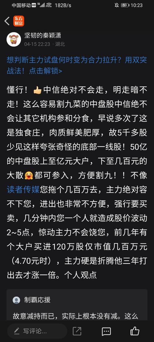 中信绝对不会走,明走暗不走!这么容易割九菜的中盘股中信绝不会让其它机构参和分食,早说多次了这是独食庄,肉质鲜美肥厚,故5千多股少见这样夸张奇怪的底部一线股!50亿的中盘股上至亿元大户,下至几百元的大散