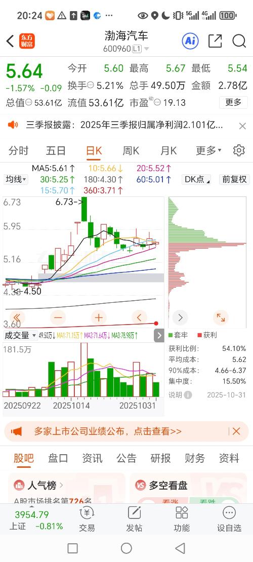 $渤海汽车(SH600960)$今天继续开盘五分钟决定位置,然后横盘一整天