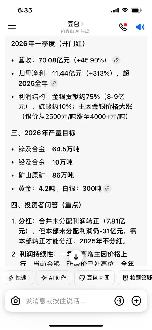 $株冶集团(SH600961)$ #强势机会# 4.28季度财报会议, 重点, 1.康家湾产矿产半生金银铟,新勘探工作完成,产能增加22-40%锌产能增加5% 2.水口山矿区2026投产,预增10-15%(其水口山矿区届时一并交付于株冶) 3.冶炼过程,ai智能化,更精准,成本费用摊薄10-12% 4.财务从50%以上的高负债,将到负40%左右,现...