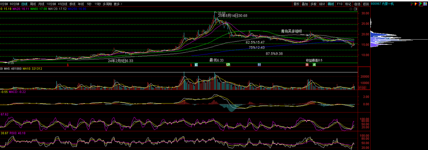 $内蒙一机(SH600967)$15块的我,看看月底能不能解套。。。