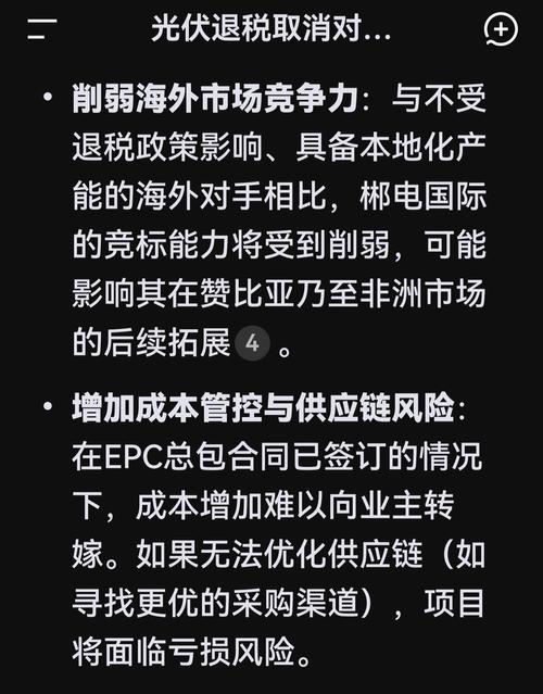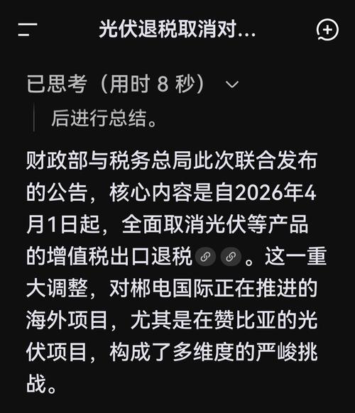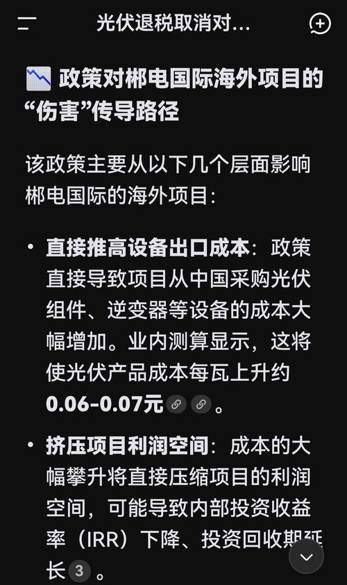 $郴电国际(SH600969)$4月1日执行的财政部与税务总局最新联合发布的公告,硅料、电池片、组件等全产业链光伏产品的增值税出口退税政策对郴电国际海外项目构成的影响还挺吓人的